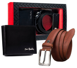 Zestaw prezentowy: skórzany portfel i pasek męski Pierre Cardin