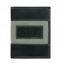 Pionowy portfel męski, skóra naturalna, nubuk i jeans Always Wild
