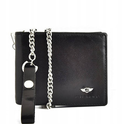 Czarny, skórzany portfel męski z łańcuchem - Peterson