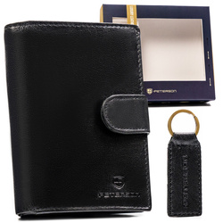 Zestaw prezentowy: skórzany, średni portfel męski i brelok do kluczy - Peterson