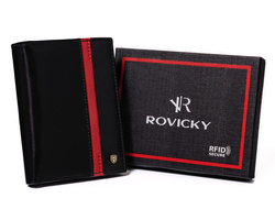 Pionowy portfel męski z zasuwanym schowkiem - Rovicky