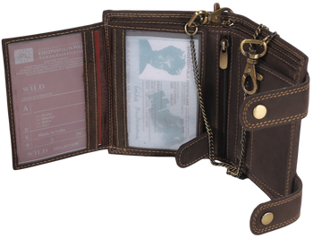 Atrakcyjny, skórzany portfel męski z mosiężnym łańcuchem - Always Wild