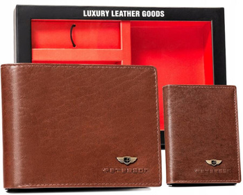 Zestaw prezentowy: skórzany portfel męski, etui i brelok Peterson