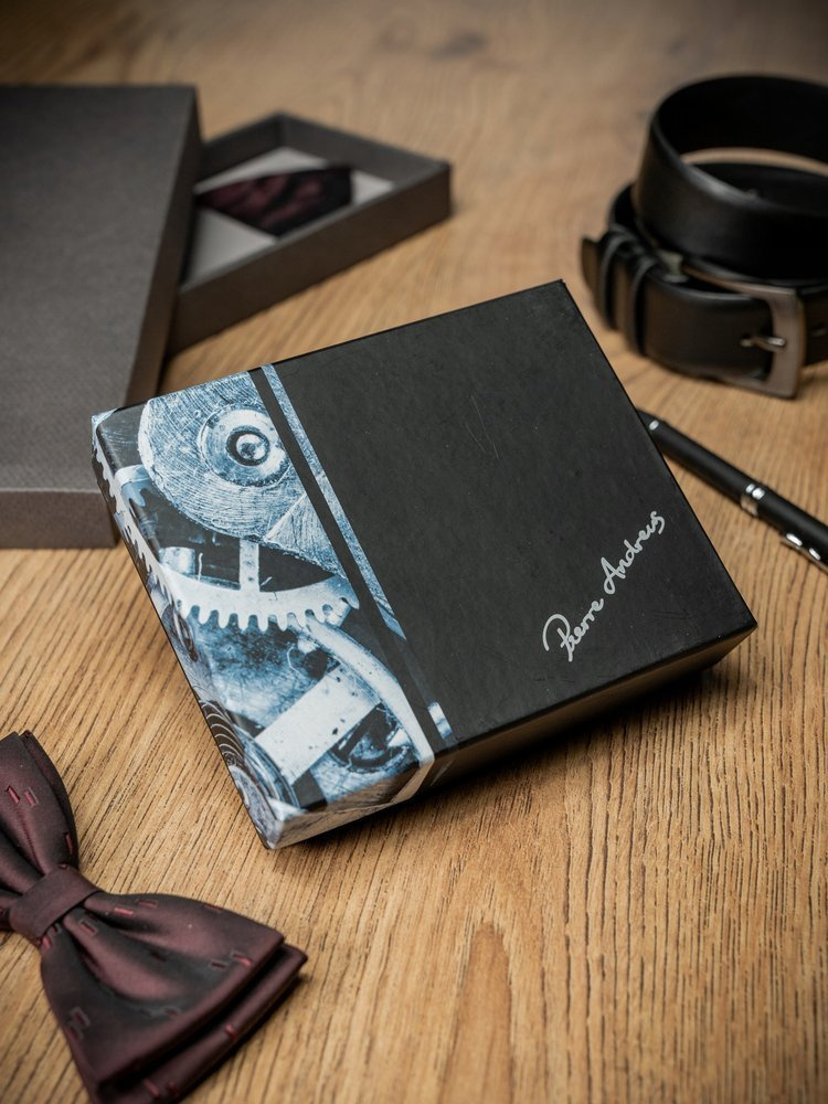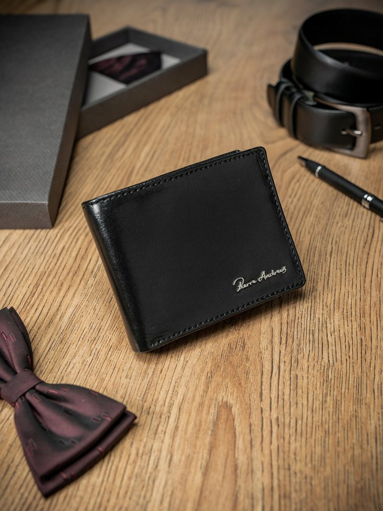 Portfel zapakowany jest w eleganckie firmowe pudełko z firmowym logo Pierre Andreus. Jest doskonałym uzupełnieniem prezentu, którym jest portfel. Wystarczy ozdobna wstążka/kokardka i piękny prezent gotowy.
