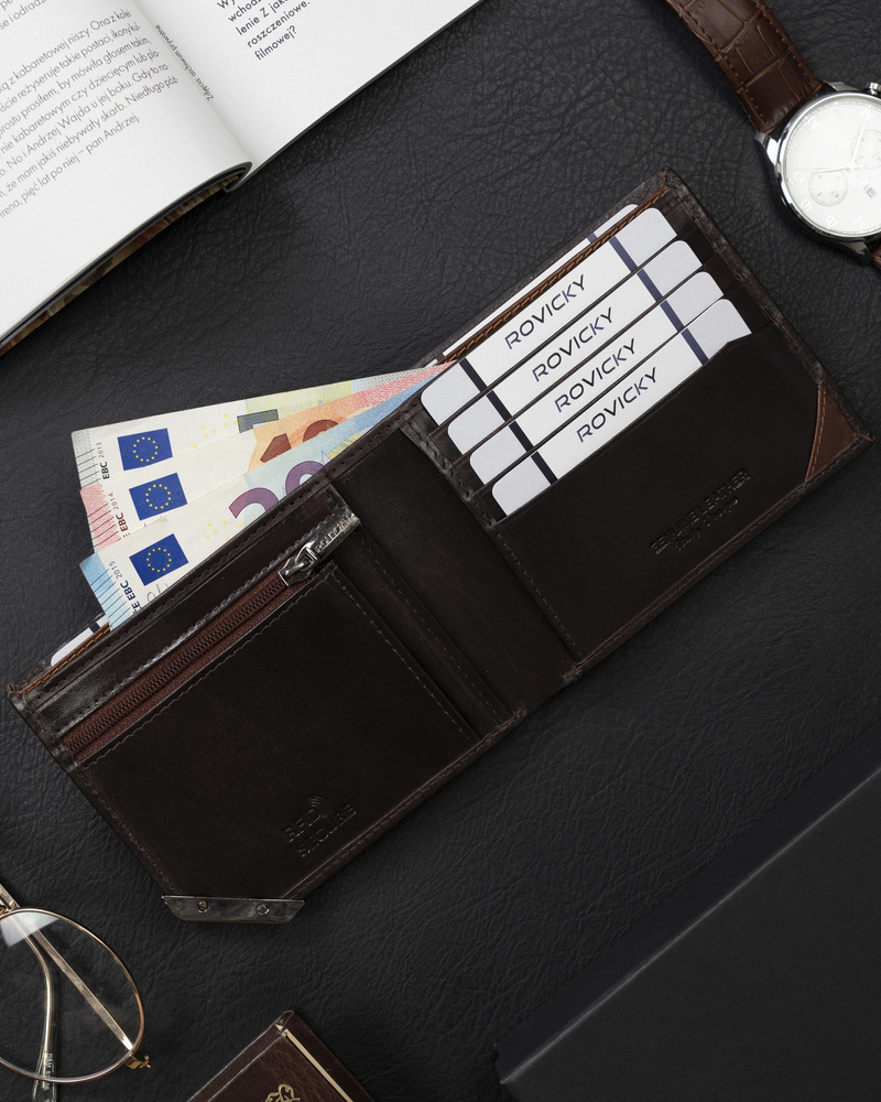 Uczciwie trzeba przyznać, że ten portfel Rovicky® prezentuje się naprawdę dobrze. Jest duży i pojemny. Któż z nas w tych czasach nie korzysta z dużej ilości kart czy dokumentów? Organizacja wnętrza umożliwia przechowanie ich w portfelu bardzo dużo.