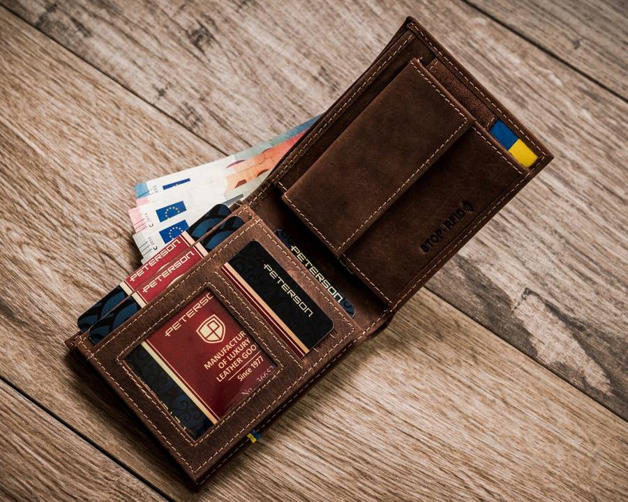 Skórzany portfel męski w orientacji poziomej z systemem RFID - Peterson