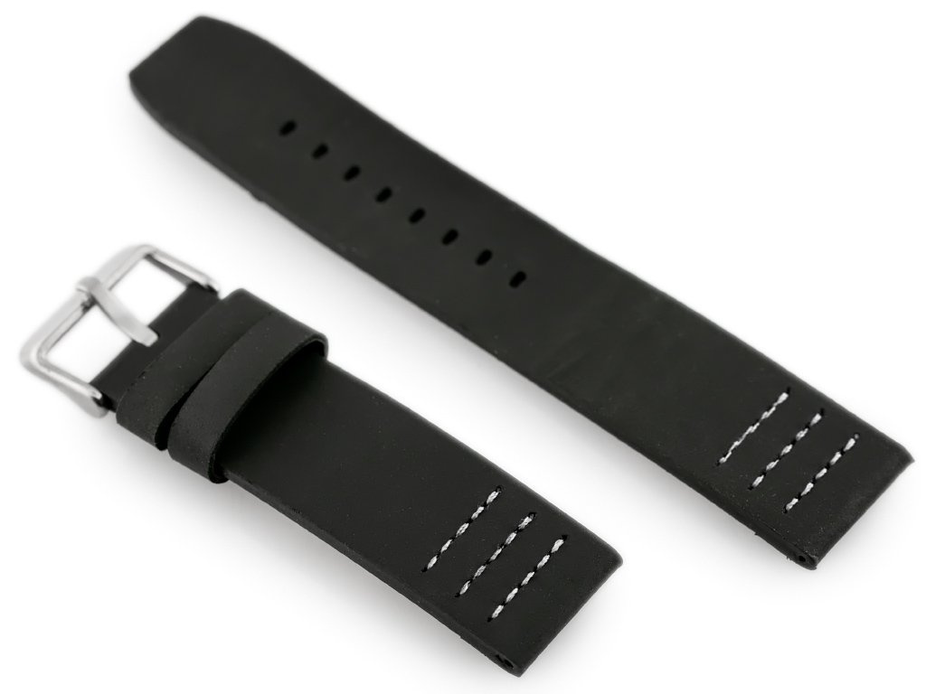 Pasek skórzany do zegarka W39 - czarny/biały 22mm