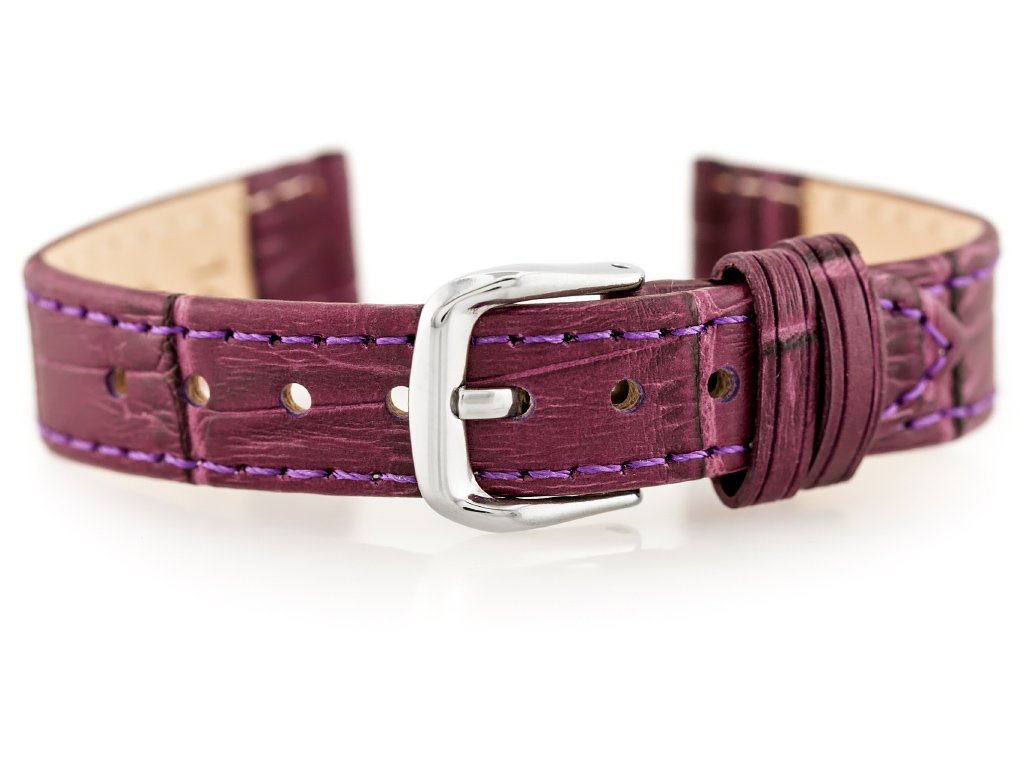 Pasek skórzany do zegarka W41 - fioletowy - 12mm