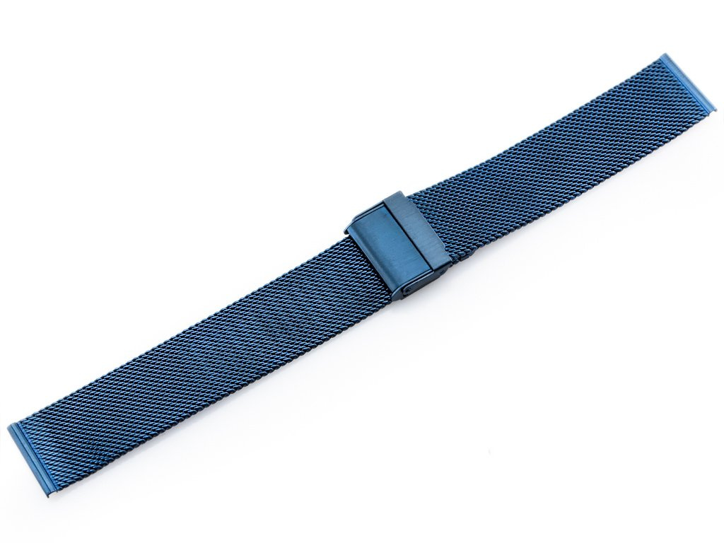 Stalowa bransoletka do zegarka typu 'siatka' wysokiej jakości w kolorze granatowym. Powlekana metodą PVD