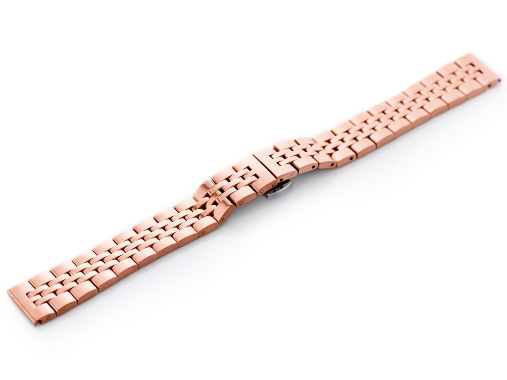 Stalowa bransoletka z zapięciem motylkowym do zegarka wysokiej jakości w kolorze różowego złota.