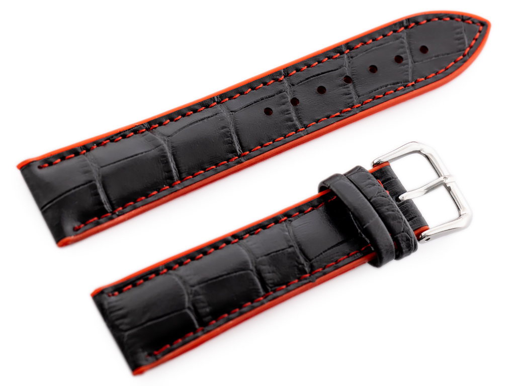 Pasek gumowy do zegarka U18 - czarny/czerwony - 22mm