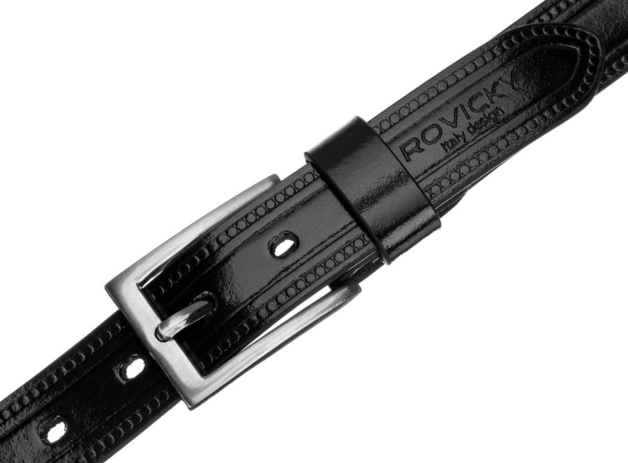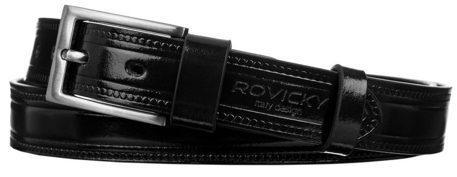 Zdobiony pasek męski z lakierowanej skóry naturalnej licowej - Rovicky