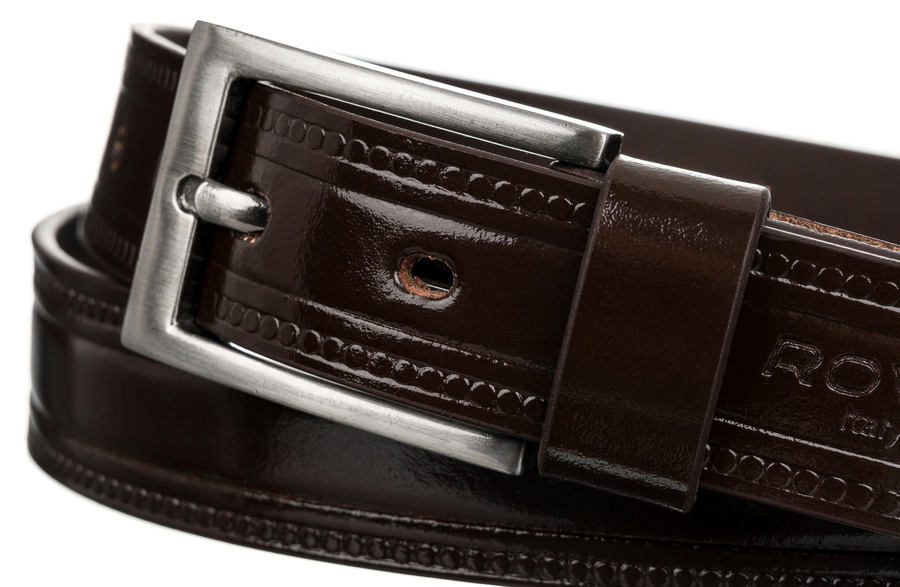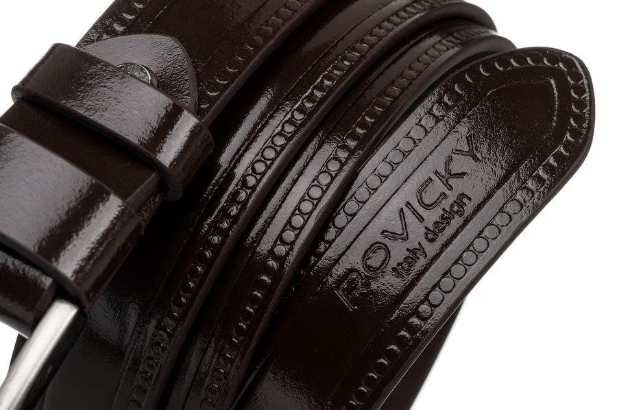 Zdobiony pasek męski z lakierowanej skóry naturalnej licowej - Rovicky