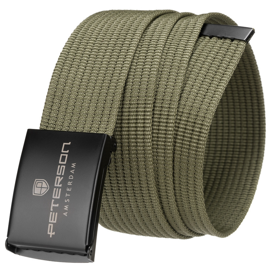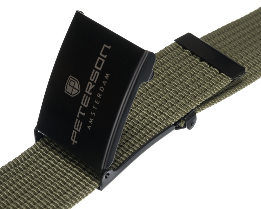 Parciany pasek męski z czarną klamrą zaciskową - Peterson