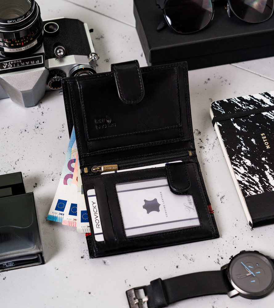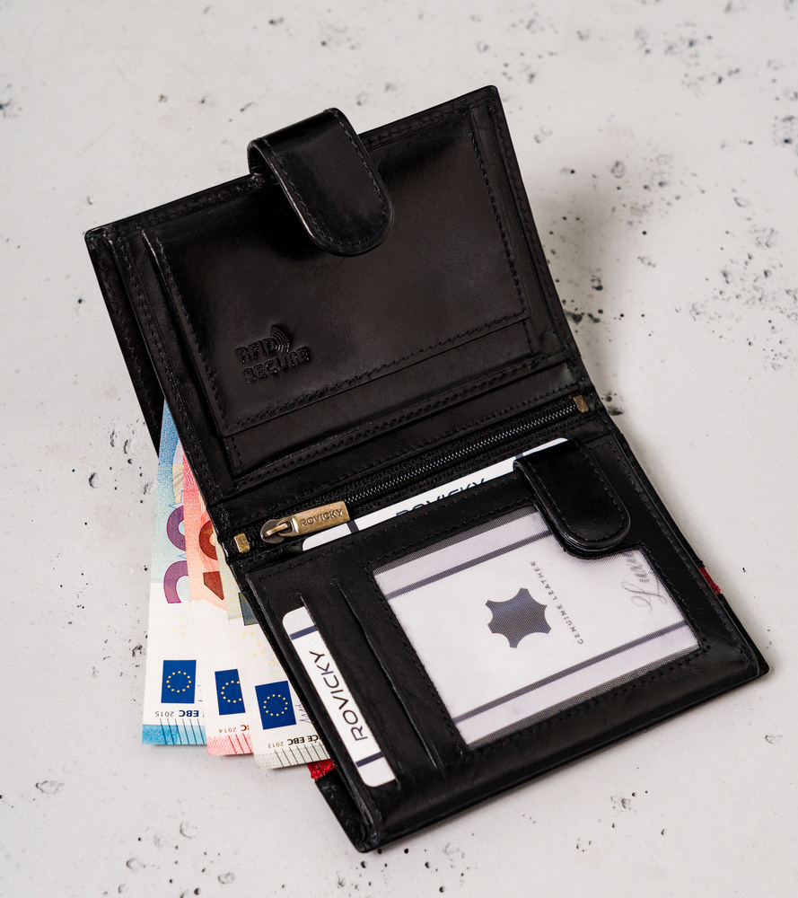 Skórzany portfel męski z zabezpieczeniem RFID Protect - Rovicky
