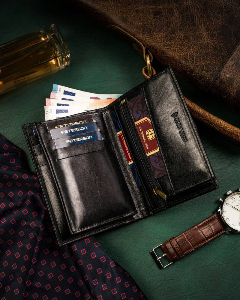Duży, skórzany portfel męski bez zapięcia - Peterson