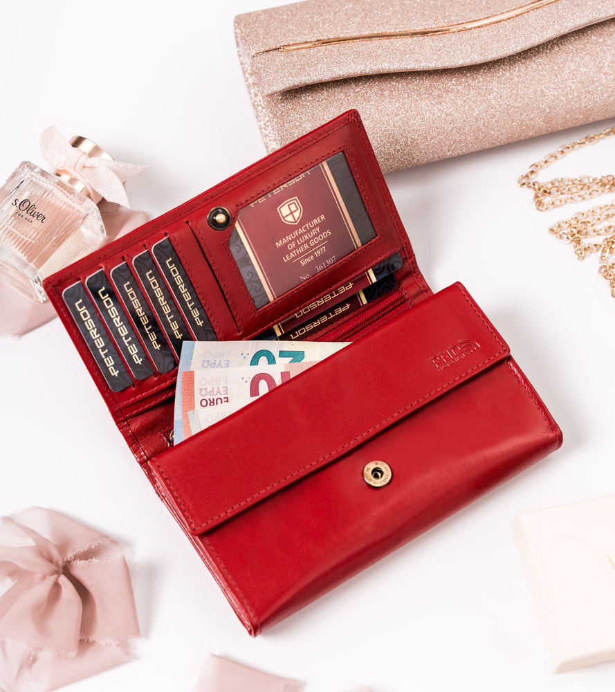 Skórzany portfel damski z zewnętrzną kieszenią - Peterson