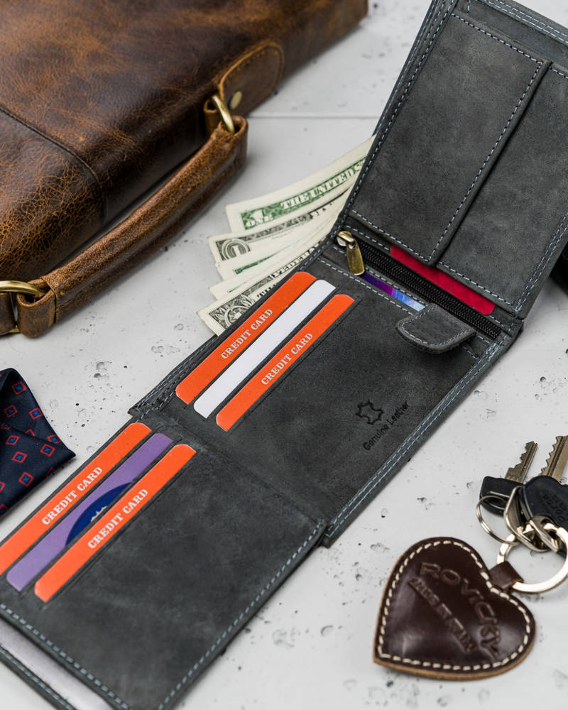- Zabezpieczony systemem RFID PROTECT | Technologia ta, chroni portfel przed złodziejami używającymi czytniku do kart. Twoje środki, do których dostęp masz za pomocą kart - są bezpieczne!