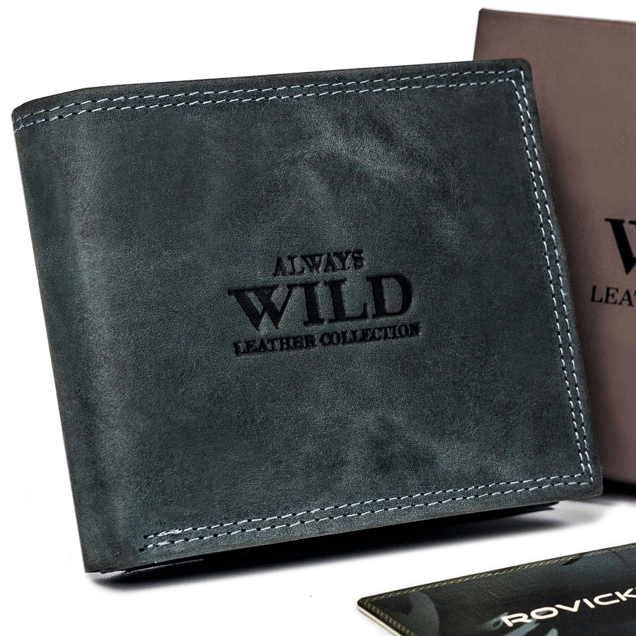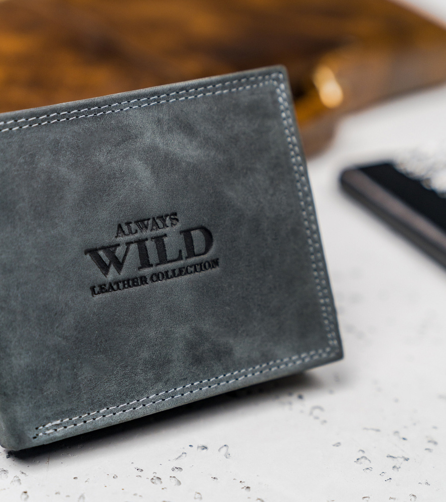 Poziomy, składany portfel męski z kieszonką zewnętrzną na kartę - Always Wild