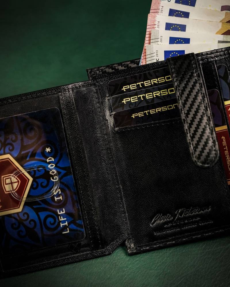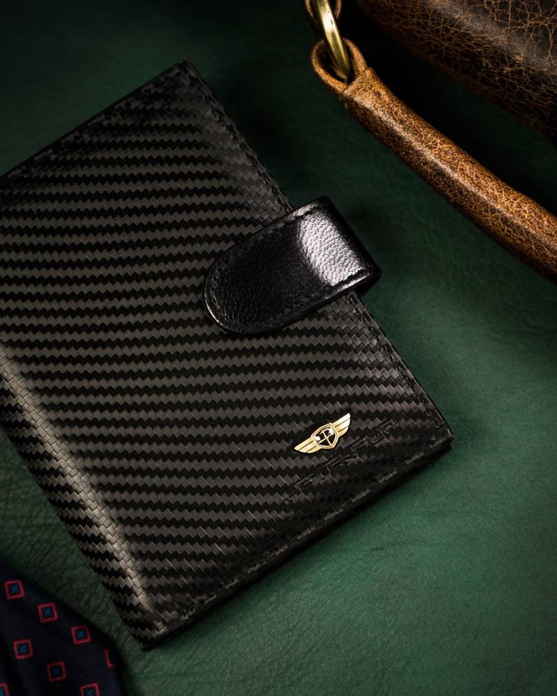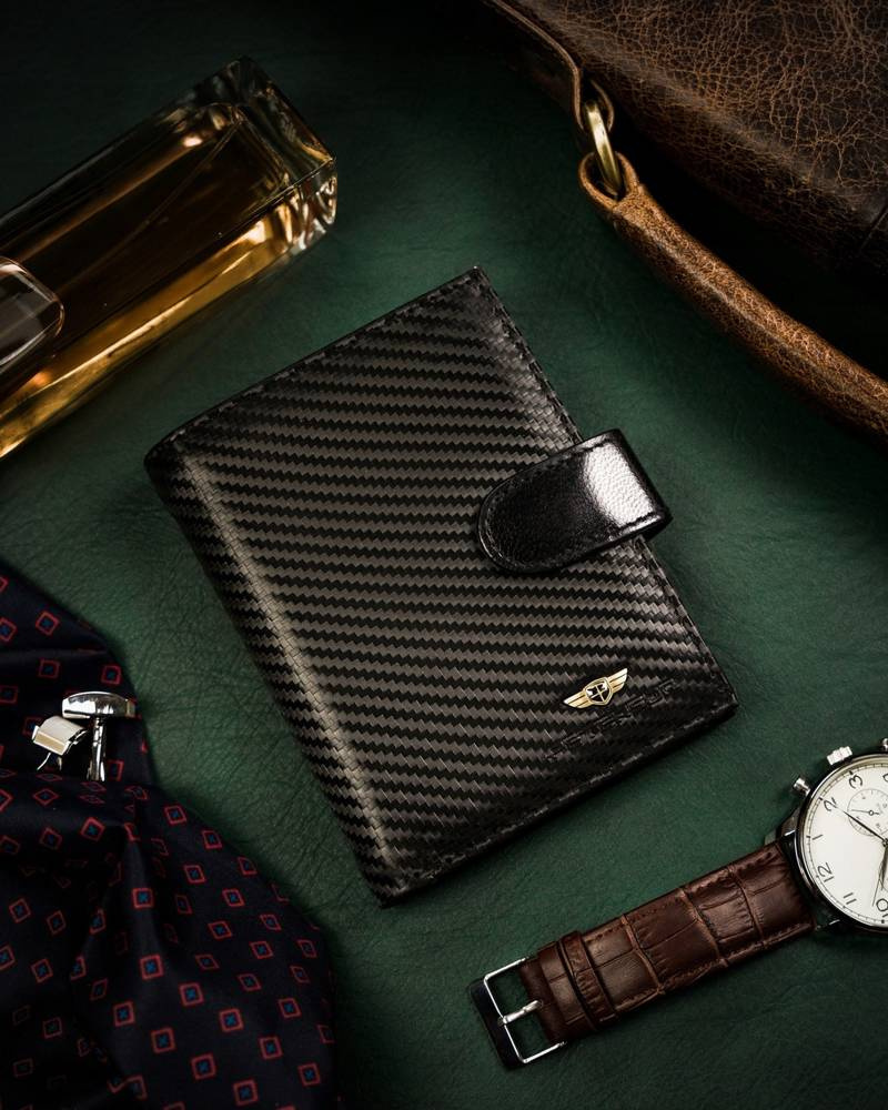 - Eleganckie wykonanie | Portfel wykonany został z wysokiej jakości skóry naturalnej powleczonej z zewnątrz warstwą do złudzenia przypominającą włókno węglowe (carbon);