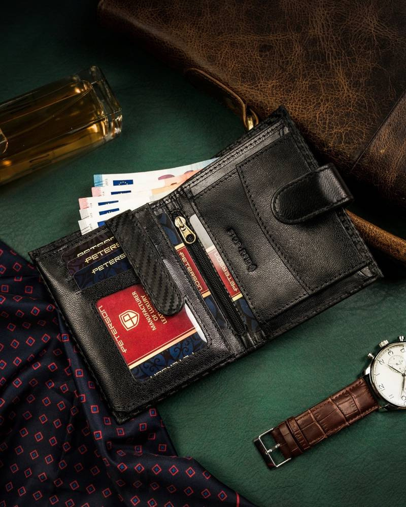 Skórzany portfel męski w orientacji pionowej zamykany na zatrzask - Peterson