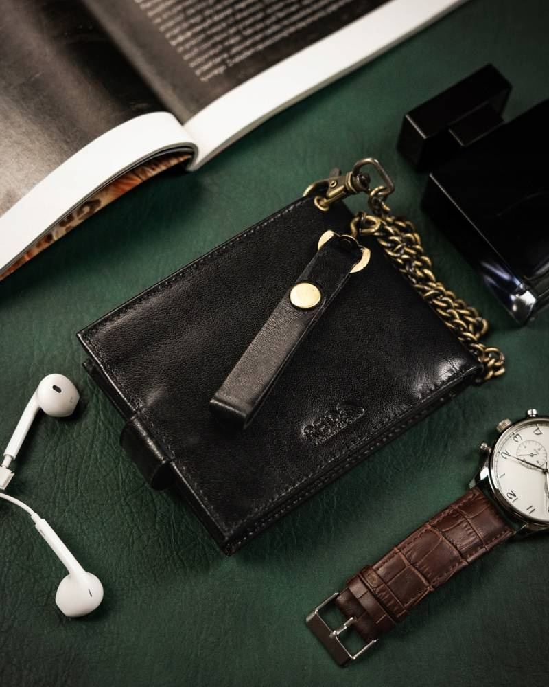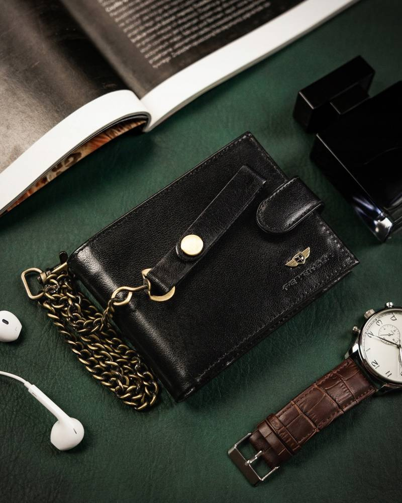 Poziomy portfel męski ze skóry naturalnej z łańcuchem - Peterson