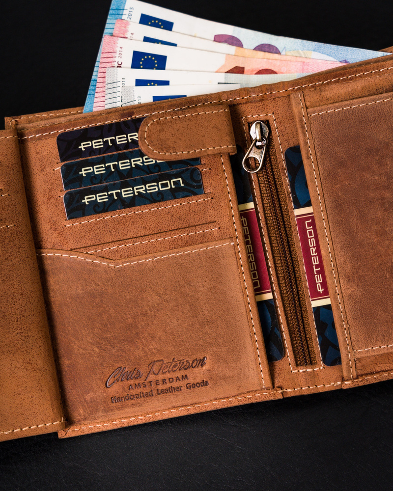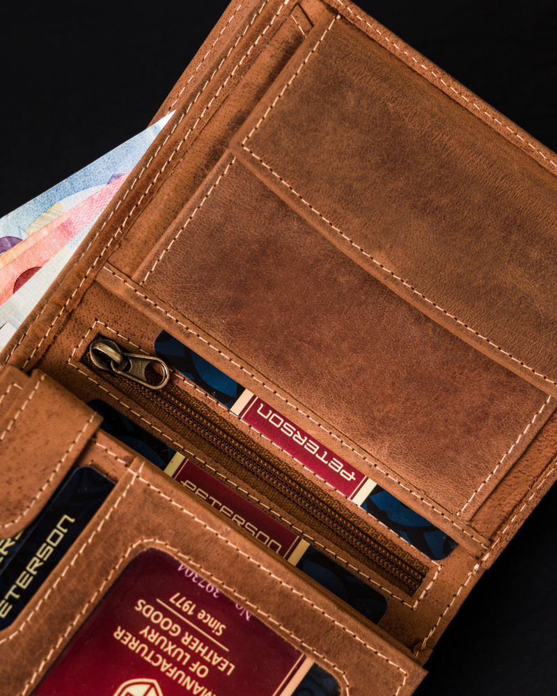 - banknoty schowasz do 2 otwartych, szerokich przegródek, wykończonych materiałową podszewką.