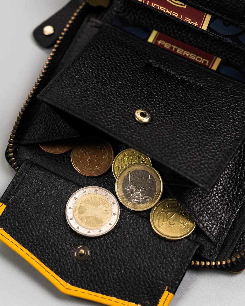 Wygodne kieszenie i przegródki na gotówkę pozwolą Ci przechować w portfelu pokaźne jej ilości.