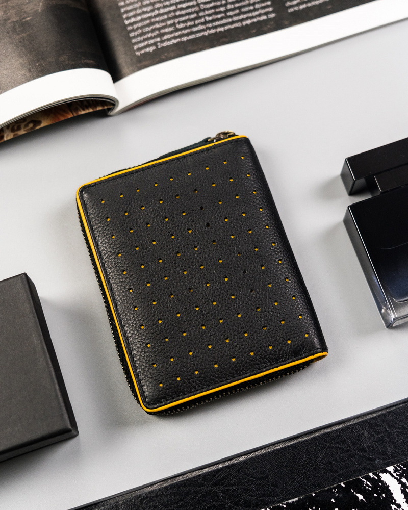 - Stylowy portfel o oryginalnym designie | Portfel z ażurowym panelem. Model w orientacji pionowej zapinany na zamek.