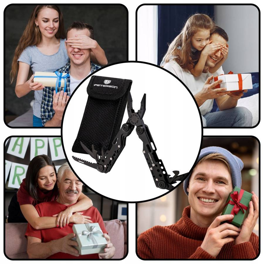 Wielofunkcyjne narzędzie wykonane z wysokiej klasy stali nierdzewnej w czarnym kolorze. Posiada aż 12 funkcji. Lekkie i niezwykle przydatne narzędzie, które zawsze warto mieć przy sobie.