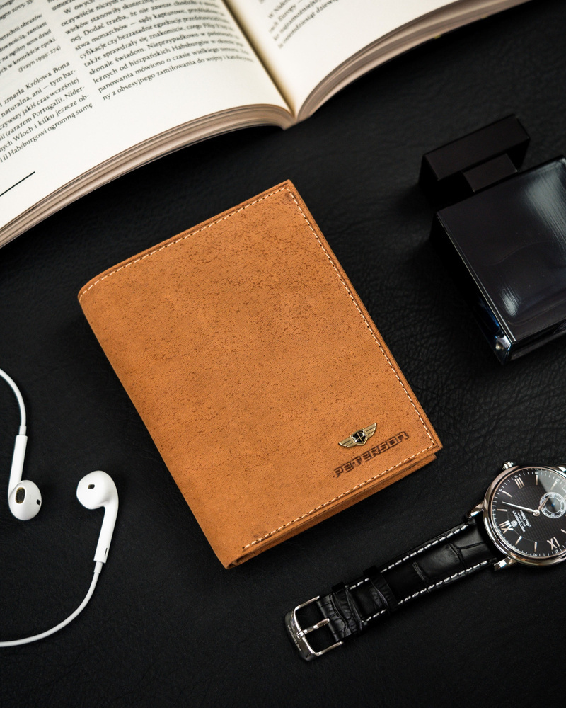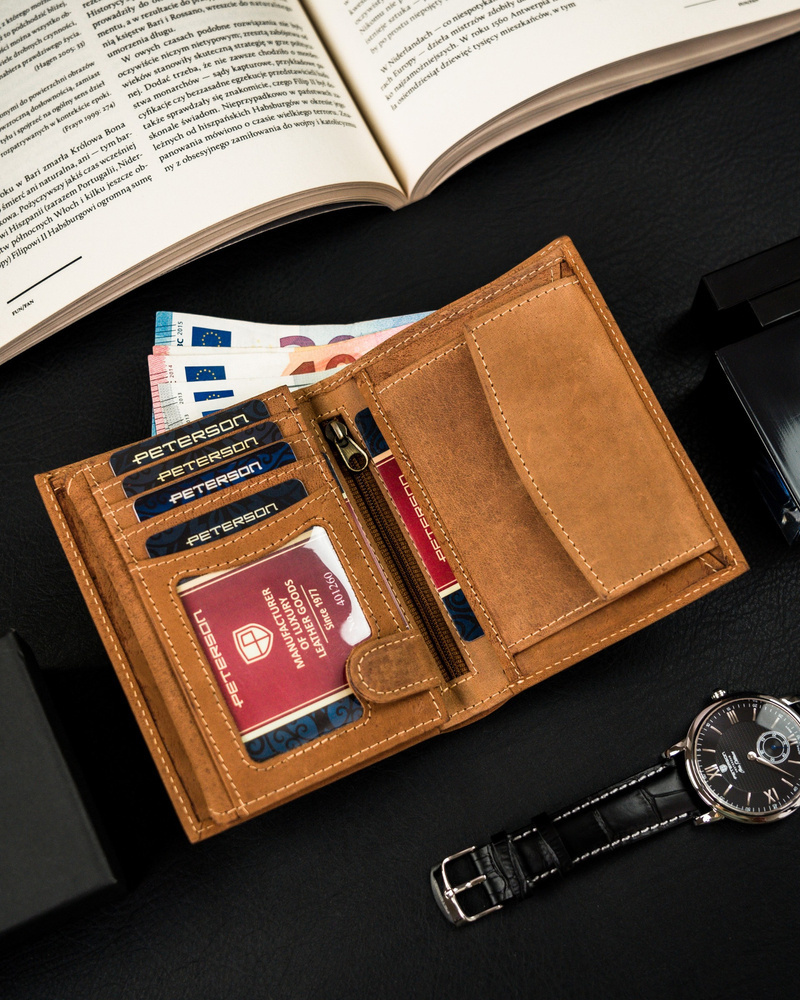 Pionowy, elegancki portfel męski ze skóry naturalnej - Peterson