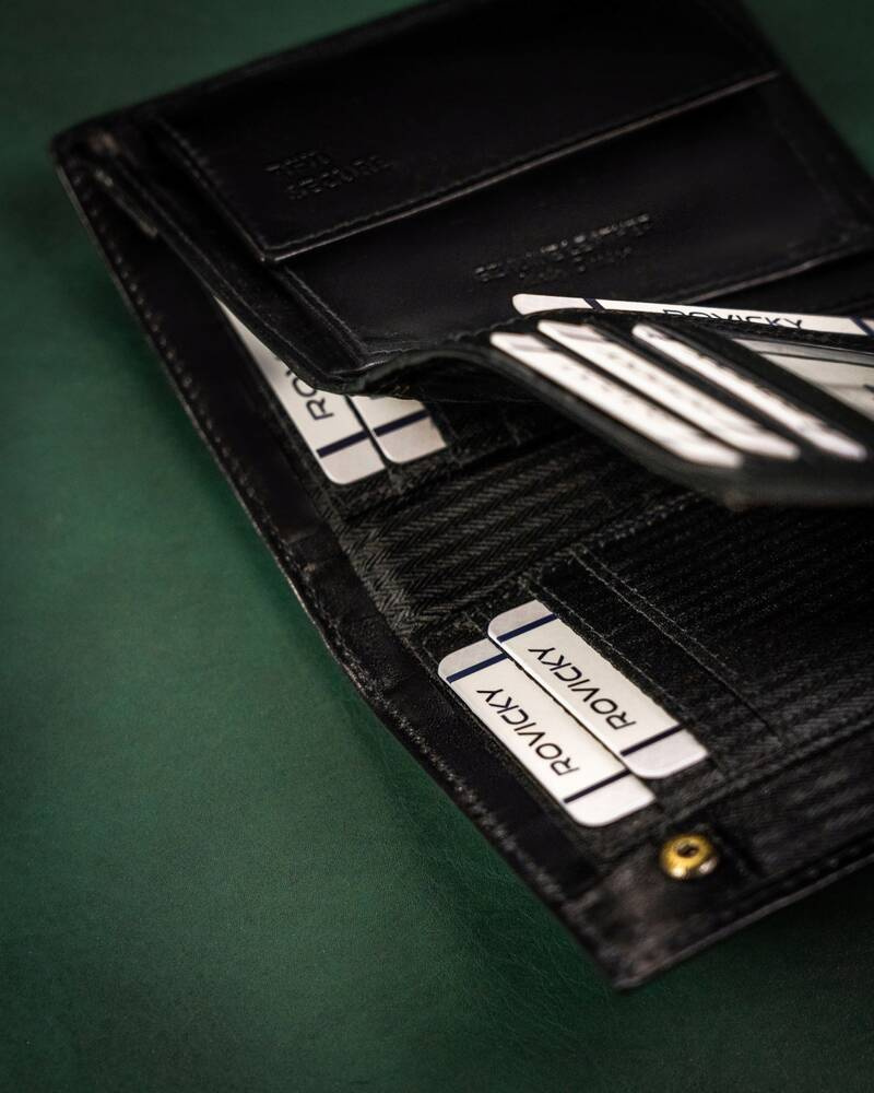 Duży, skórzany portfel męski bez zapięcia - Rovicky