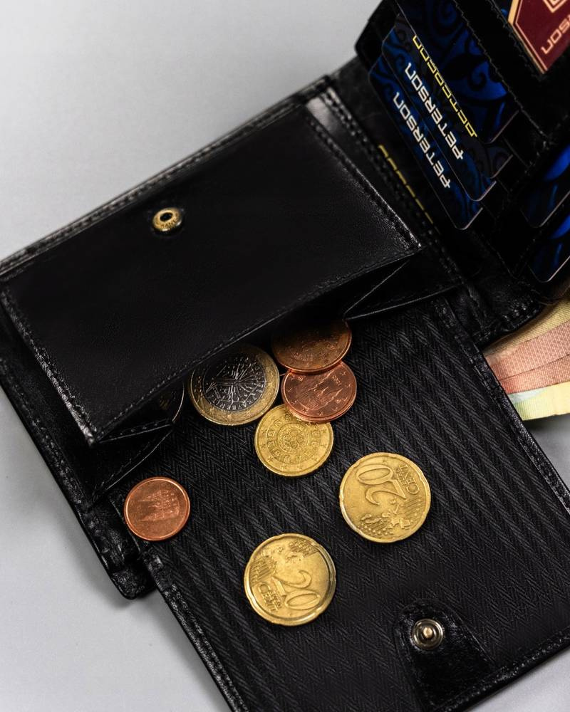 - banknoty schowasz do 3 kieszeni; dwie z nich są otwarte, jedna zapinana na suwak.