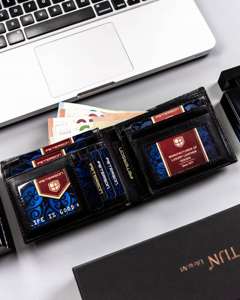 Duży, skórzany portfel męski bez zapięcia - Peterson