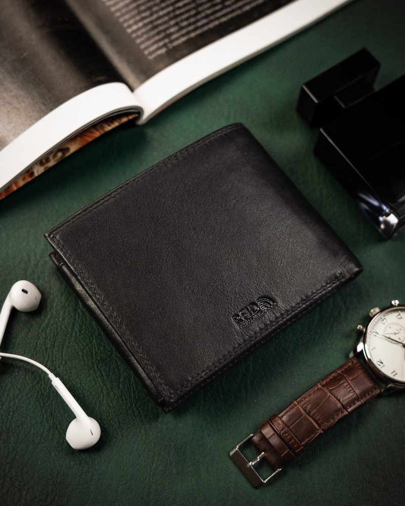 Portfel w orientacji poziomej bez zapięcia zewnętrznego. Idealny dla Mężczyzn w każdym wieku!