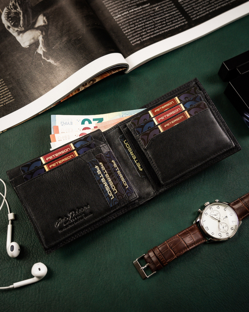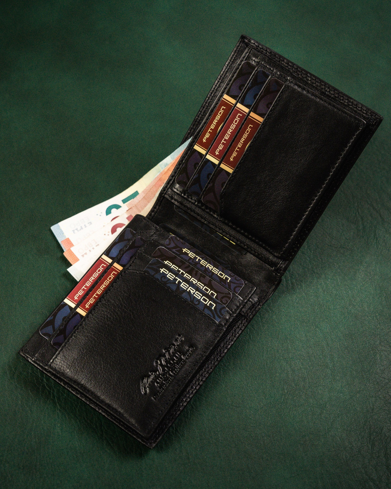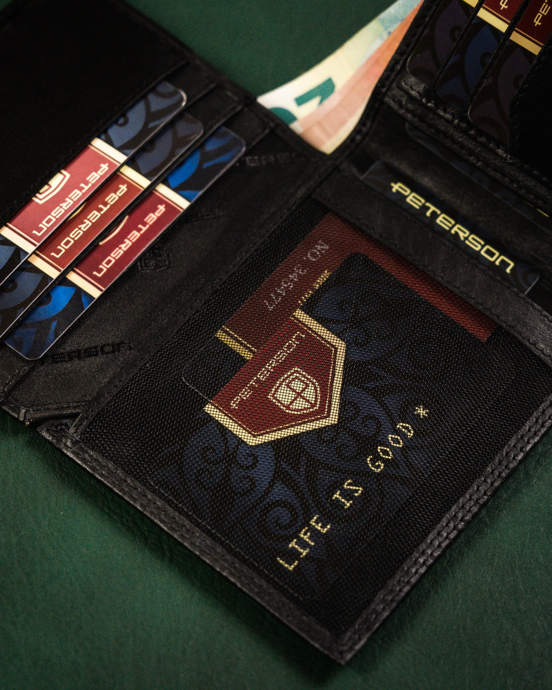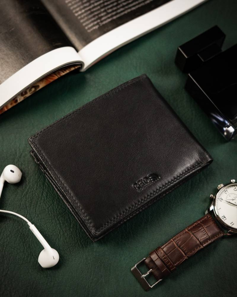 - Ponadczasowy fason dla Panów w każdym wieku | Portfel o klasycznej stylistyce. Model w orientacji poziomej bez zapięcia;