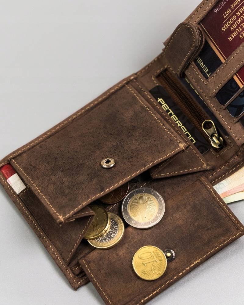 W kieszeniach na banknoty i monety zmieścisz satysfakcjonującą ilość gotówki.