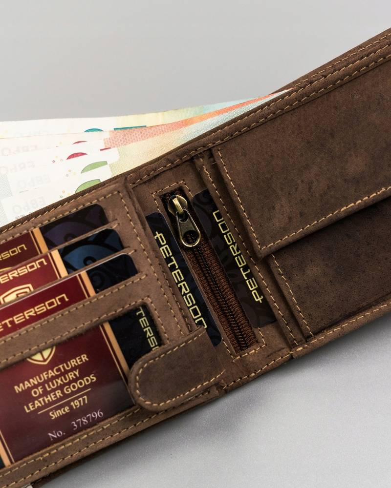 • banknoty schowasz do 2 otwartych, szerokich przegródek, wykończonych materiałową podszewką.