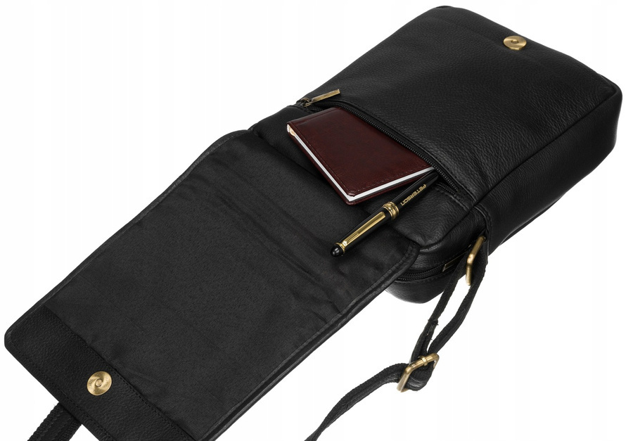 - Klasyczny design | Listonoszka zamykana solidnym zamkiem błyskawicznym. Wszystkie okucia w torebce mają piękny kolor starego złota, co tworzy świetny kontrast dla czarnego koloru skóry;
