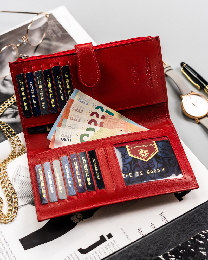 Duży, skórzany portfel damski na zatrzask - Peterson
