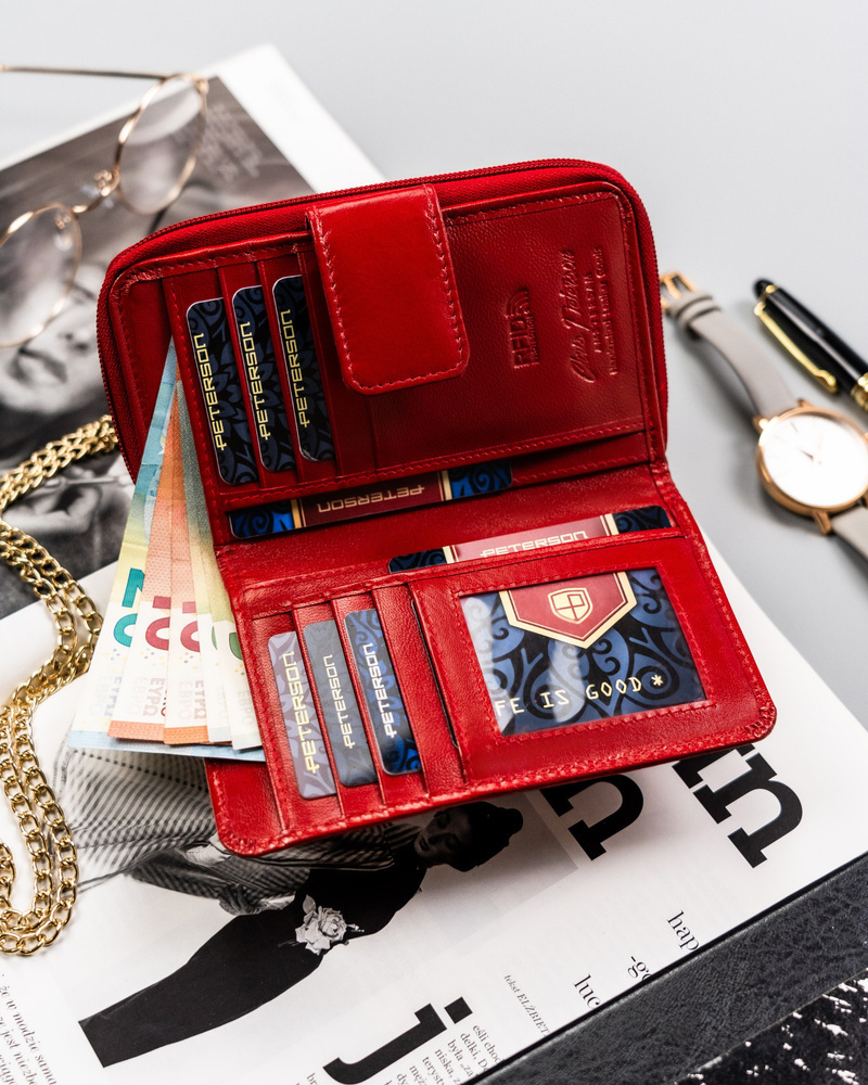 Duży, skórzany portfel damski na zatrzask - Peterson