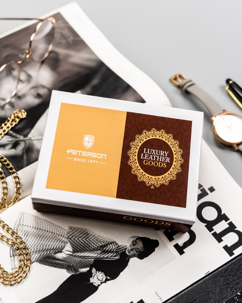 - Wyposażony w system RFID | Technologia ta zabezpiecza kartę w portfelu przed kradzieżą środków z konta;
