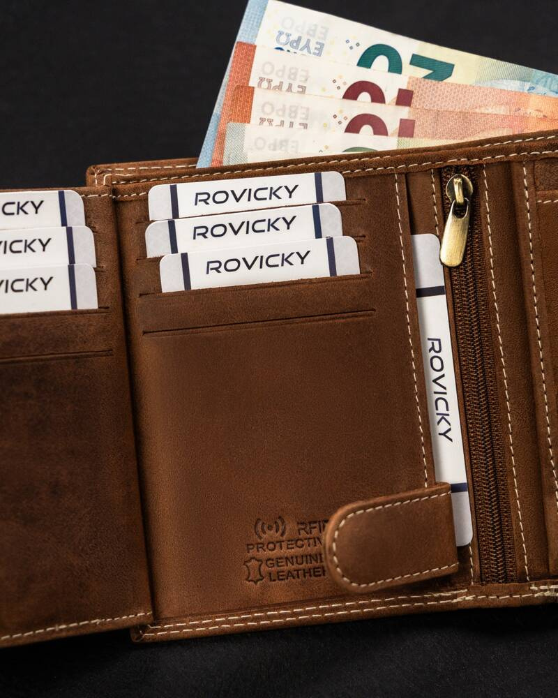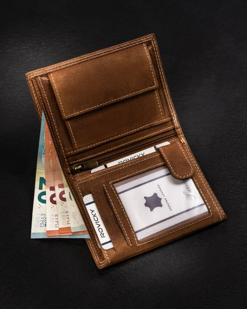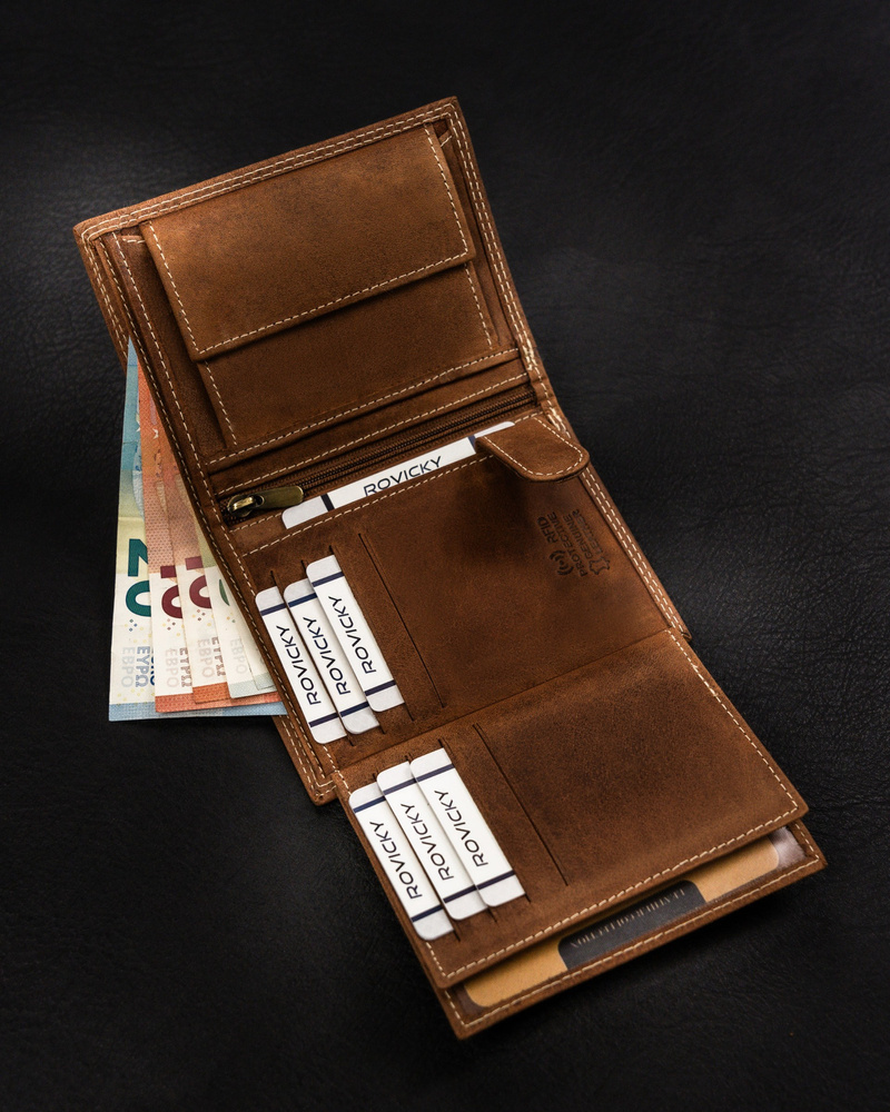 - banknoty schowasz do 2 otwartych, szerokich przegródek, wykończonych materiałową podszewką.