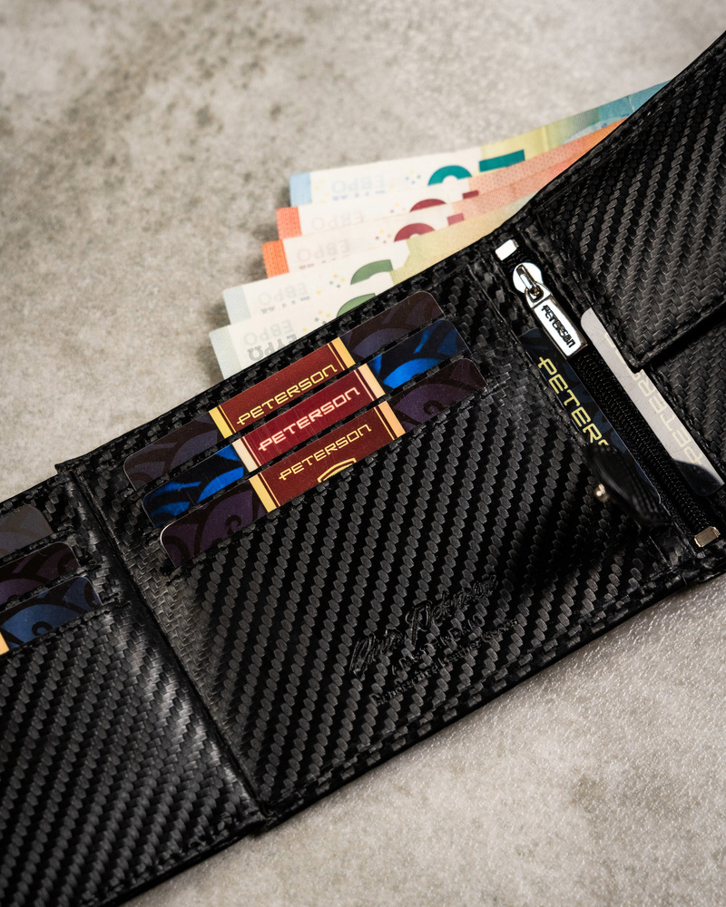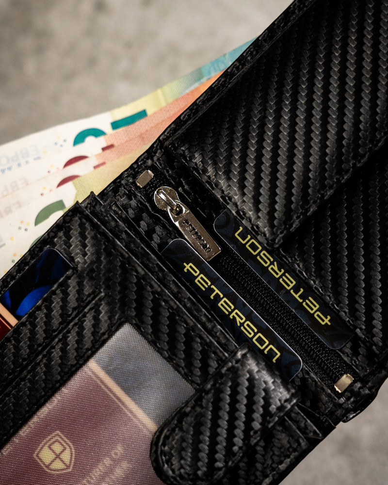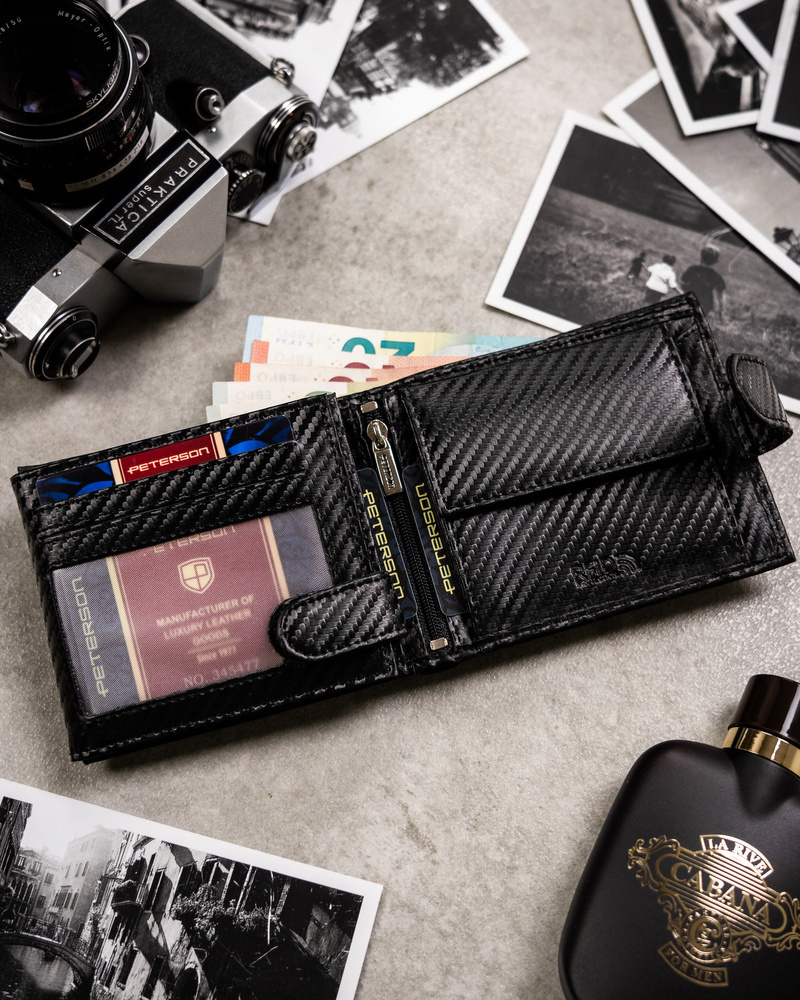 Męski zestaw carbon z portfelem i brelokiem - Peterson