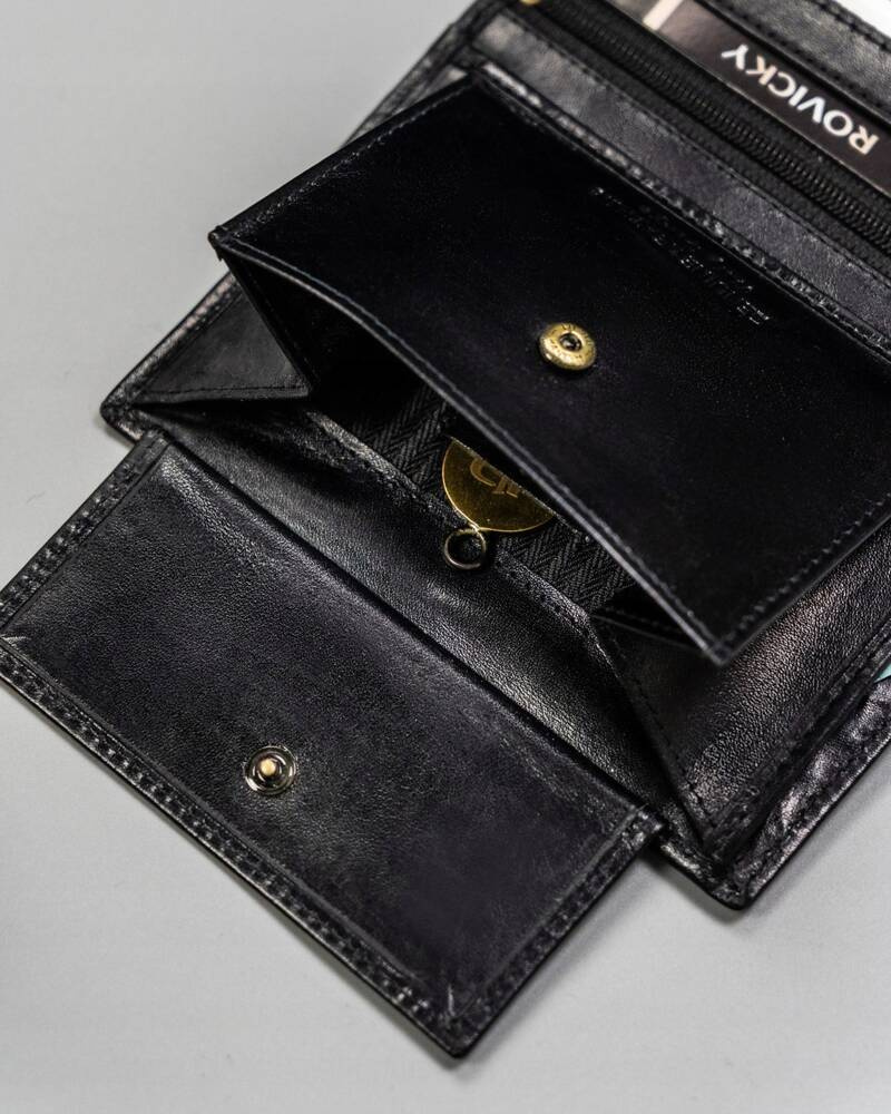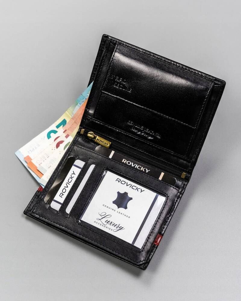 Duży, skórzany portfel męski z systemem RFID bez zapięcia zewnętrznego - Rovicky
