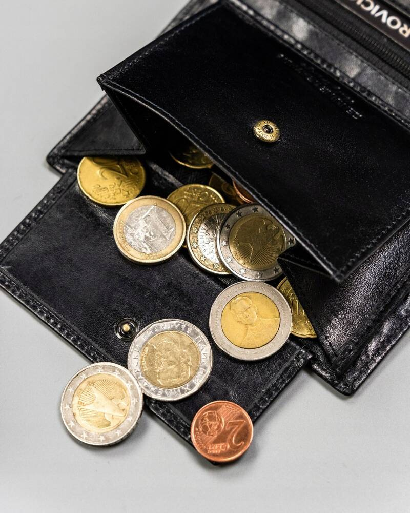 - monety schowasz do 1 sporej kieszonki zapinanej mocnym zatrzaskiem;
