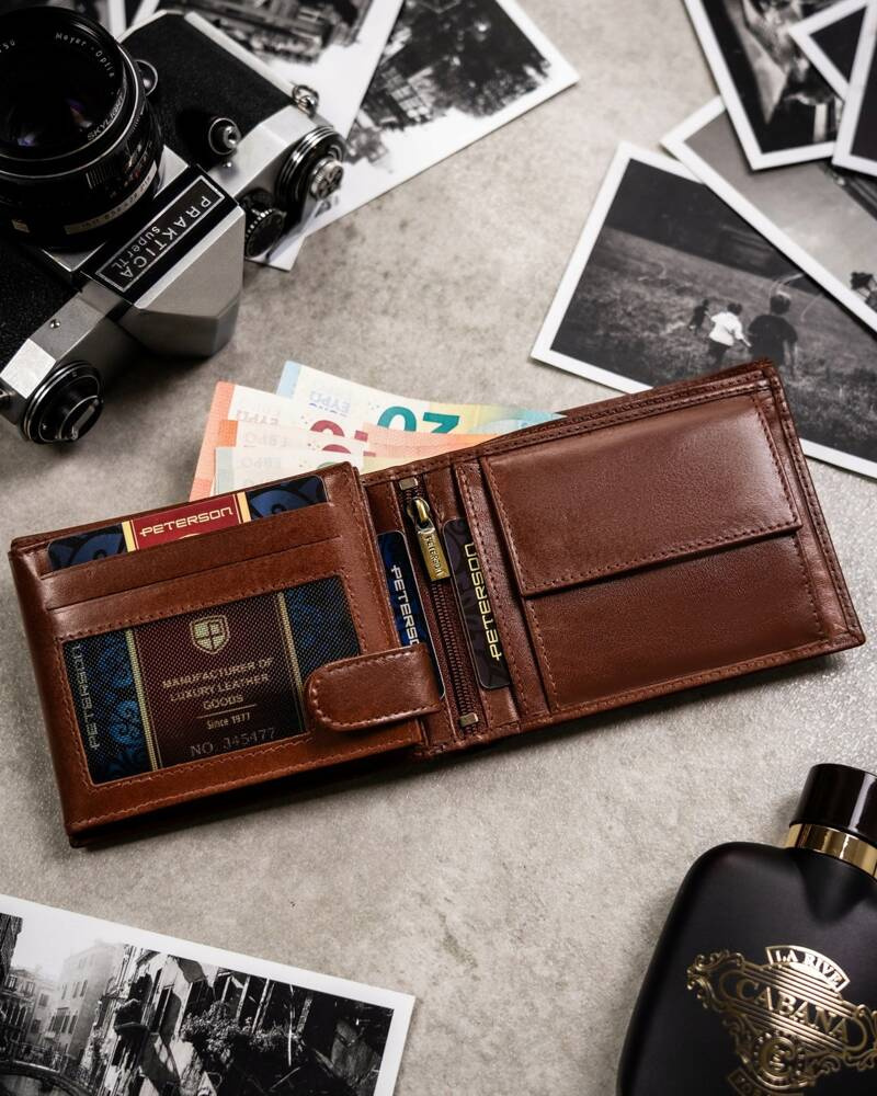 Zestaw prezentowy: elegancki skórzany portfel, etui na karty i brelok - Peterson