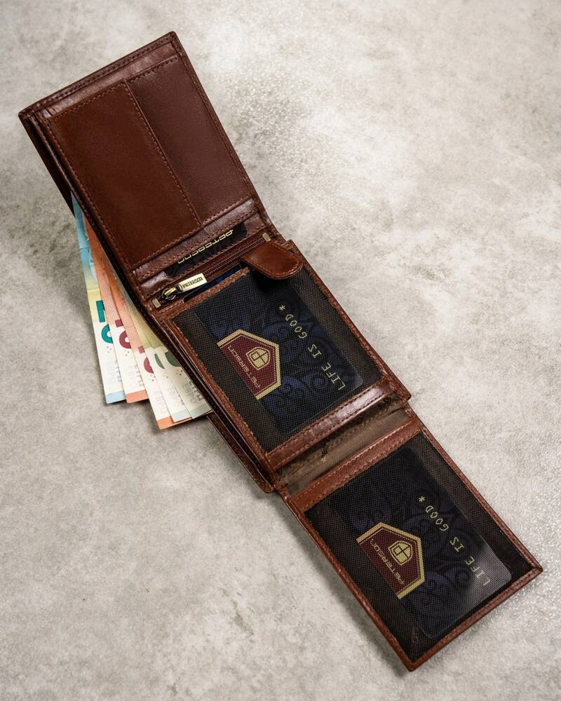 Zadbaj o odpowiednią segregację dokumentów i pieniędzy. Portfel posiada szereg przegródek i kieszonek umożliwiających dobrą organizację.