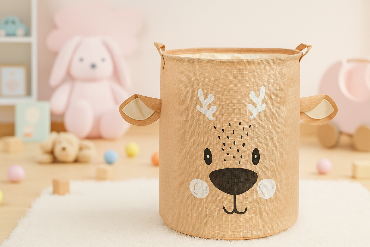 Praktyczny, trwały, stylowy, składany kosz na zabawki lub pranie. Idealne rozwiązanie, aby utrzymać porządek w pokoju dziecka.