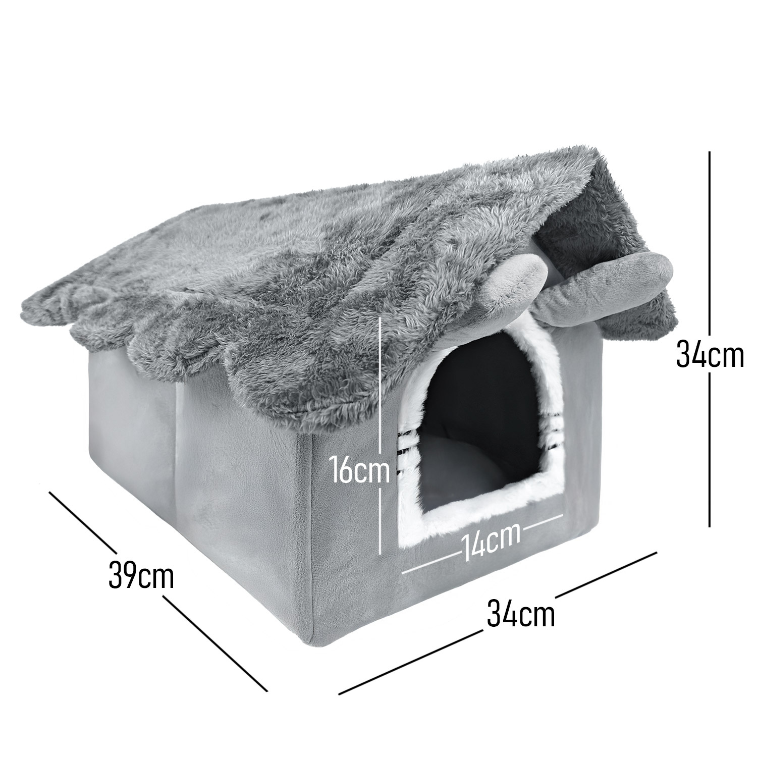 - Pluszowy i przytulny: miły w dotyku materiał sprawia, że domek jest niezwykle komfortowy dla naszego pupila